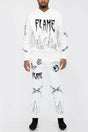 Stay warm and stylish with the Chenille Flame Sweat Suit, a bold statement in comfort and design. This matching set features a soft, high-quality chenille fabric that offers a plush feel and exceptional warmth. The eye-catching flame design adds a dynamic, streetwear-inspired touch, making it perfect for those who love to stand out. With a relaxed fit, elastic waistband, and ribbed cuffs, this sweat suit ensures a comfortable and flexible wear for any casual outing or lounging at home. Elevate your athleisure game with this unique and effortlessly cool set.